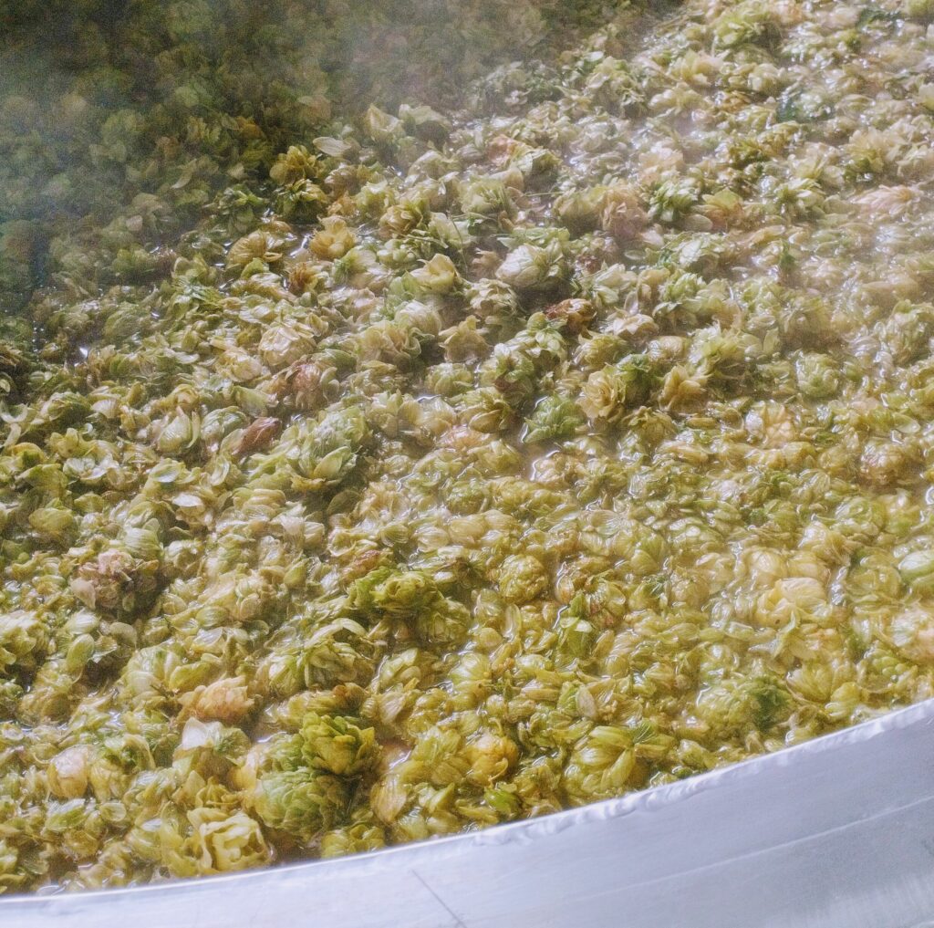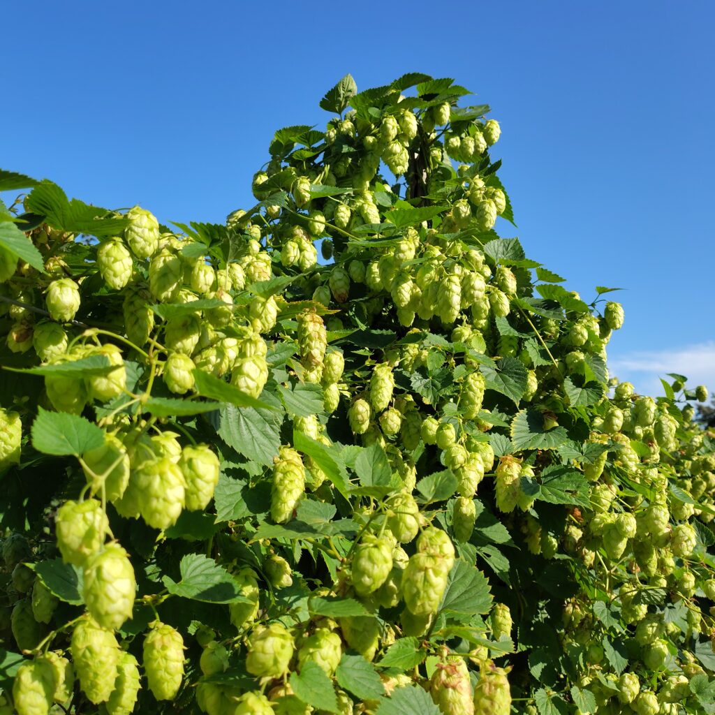 Une micro-houblonnière d’une trentaine de pieds a également été installée dans le verger familial, permettant d’expérimenter la culture du houblon à petite échelle — houblon que vous retrouverez notamment dans la Marcelle à la plage.